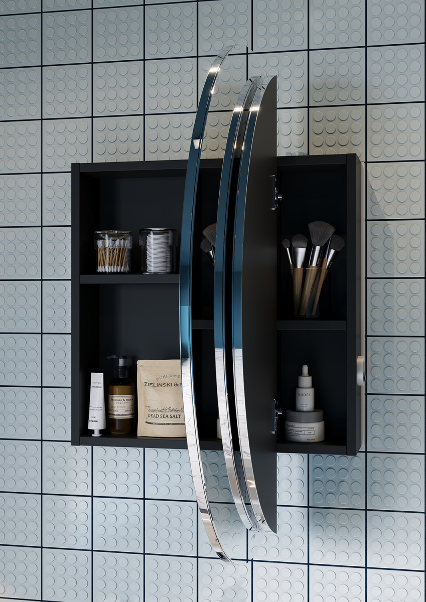 еркальный шкаф Luna от бренда Roca – оригинальное и функциональное решение для ванной комнаты. Зеркальный шкаф выполнен из влагостойкой ЛДСП в цвете антрацит, что обеспечивает долговечность использования и безупречный внешний вид. LED-светильник с выключателем обладает температурой света 5700К – яркий свет, идеальный для утренних процедур. Зеркальный шкаф разделен на две части-створки, за которыми скрываются полочки из влагостойкой ЛДСП.