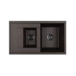 Кухонная мойка из литого мрамора в современном минималистичном дизайне с увеличенной глубокой чашей и дополнителнительной чашей.