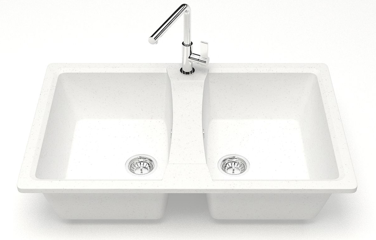 Кухонная мойка AZARIO Elmas 780х500х190 двойная, искусственный мрамор, цвет белый лед () CS00078330