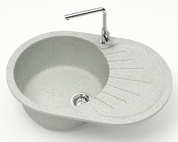 Кухонная мойка изготовлена из современных экологически чистых материалов, природного молотого кварца, мрамора или гранита с добавлением специальных пигментов и красителей.