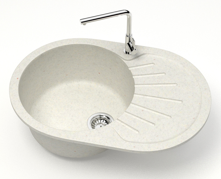 Кухонная мойка изготовлена из современных экологически чистых материалов, природного молотого кварца, мрамора или гранита с добавлением специальных пигментов и красителей.