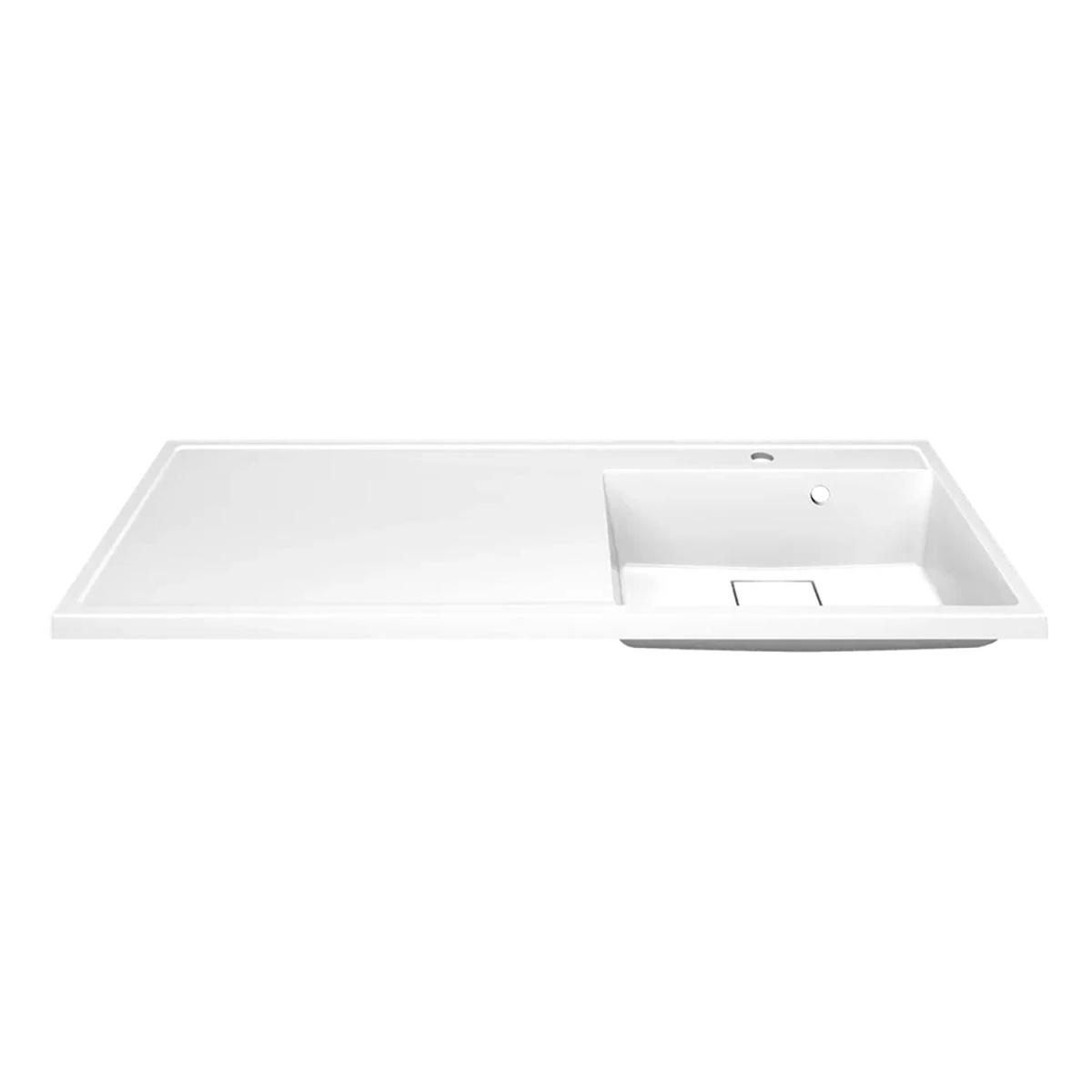 Раковина-столешница универсальная Paola Magenta 1100 R (правая чаша) для подвесной установки над стиральной машиной и частично на тумбу. Современная, стильная, эргономичная, позволяет экономить площадь ванной комнаты, так как под столешницу прекрасно впишется стиральная машина. Также возможен монтаж раковины полностью на тумбу вровень. Раковина выполнена из прочного износостойкого литьевого мрамора, сверху покрыта специальным защитным покрытием гелькоутом. Исполнение поверхности Glossy Shine – изделие обладает глянцевым блеском, очень приятное на ощупь, прочное. Даже при минимальном уходе долго сохраняет безупречный цвет и внешний вид. В комплекте – левый кронштейн с крепежом, выпуск и декоративный элемент, под которой спрятан слив, технический паспорт и гарантийный талон. Заводская гарантия составляет 5 лет, срок службы более 10 лет.