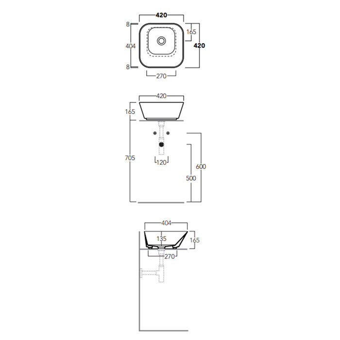 Раковина чаша SIMAS WAVE квадратная 420х420х165, цвет белый WA03 bi*0
