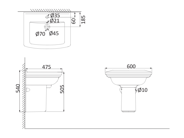 Раковина на одной ножке Creo Ceramique ORLEANS 600х475х870, белая OR3000+OR3010