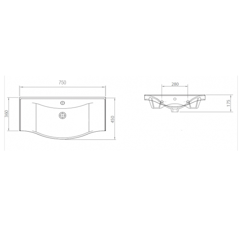 Раковина накладная Lapino BASIC 75 75X45X17,5, белая 7075