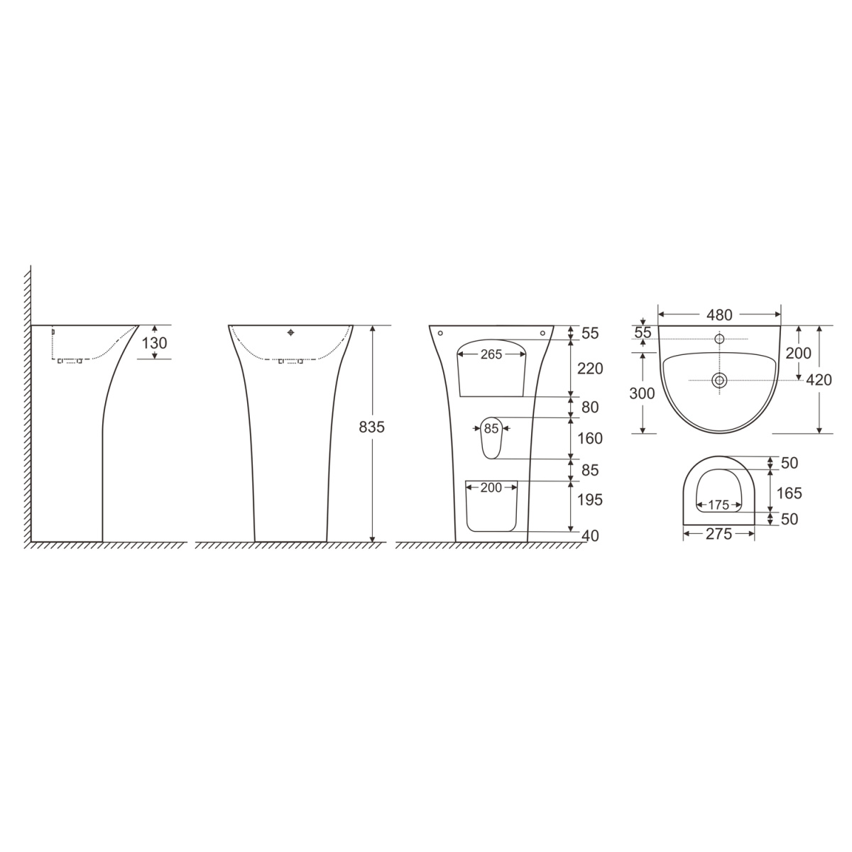 Раковина напольная AZARIO FRETTA ROUND 480x420x835 отдельностоящая AZ-307