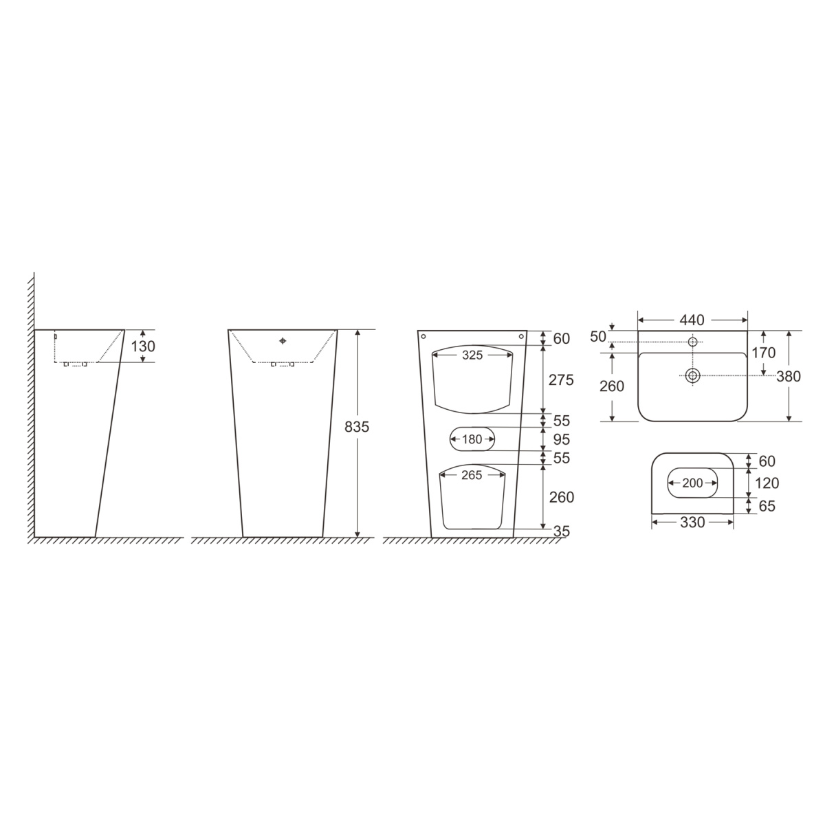 Раковина напольная AZARIO FRETTA SQUARE 440х380х835 отдельностоящая прямоугольная AZ-302