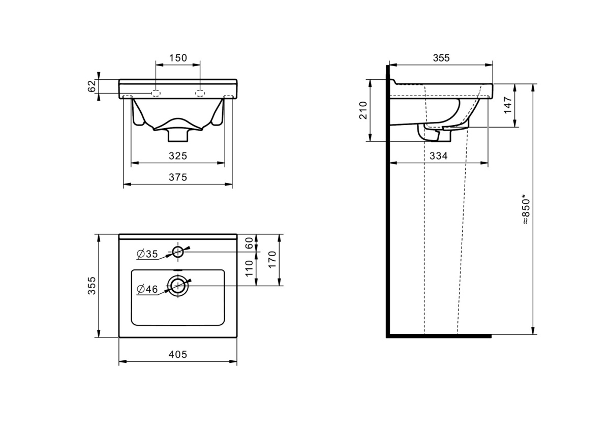 Раковина подвесная Santeri Визит-40 с переливом, белый 1.3117.7.S00.11B.0