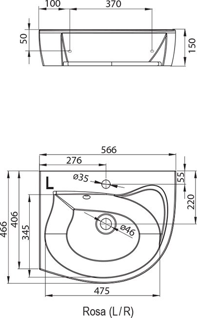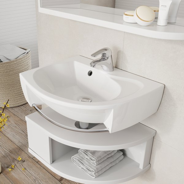 Умывальник Rosa можно дополнить тумбой под умывальник Rosa или установить на стену. Монтажный набор (соединительные дюбеля, винты и т.д.) и крышка перелива входят в комплектацию изделия.