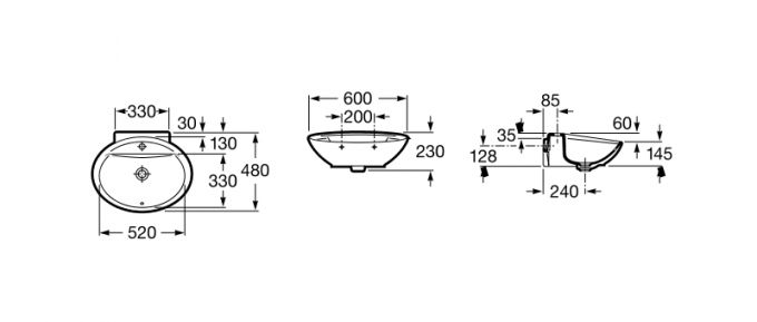 Раковина Roca FONTANA 600х480х230 мм., белая 7.3278.7.700.0