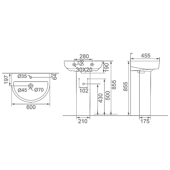 Раковина с пьедесталом Creo Ceramique RENNES 600х455х855 керамика, белый глянцевый RE3000+RE3010