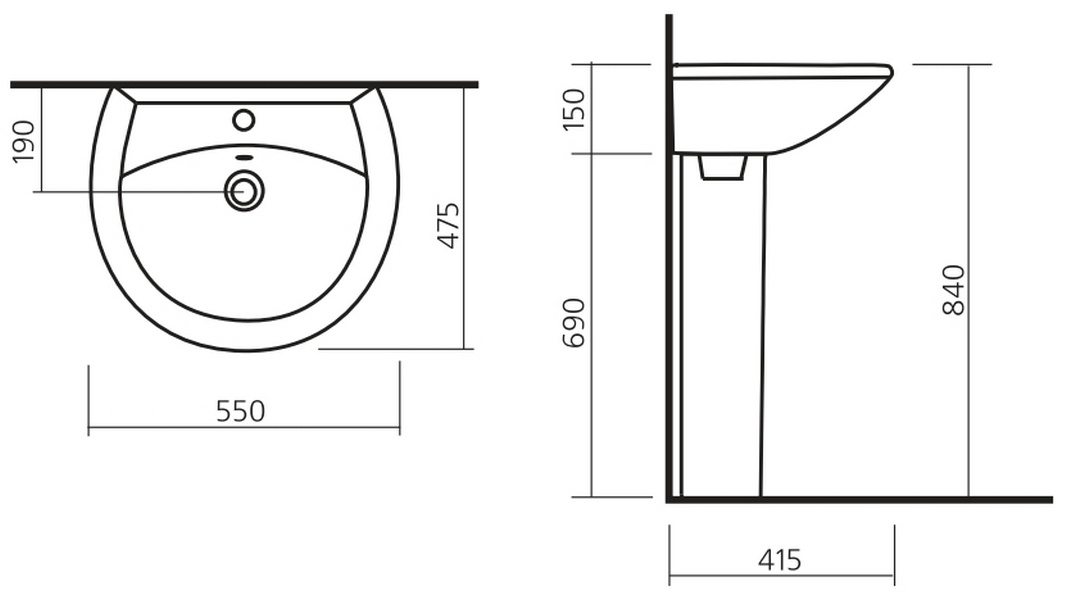 Раковина Sanita Аттика 55, белая ATC55SAWB01 WB.PD/Attica/55-C/WHT.G/S1