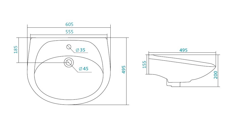 Раковина Santek “Бриз-55”, белая 1.WH11.0.460