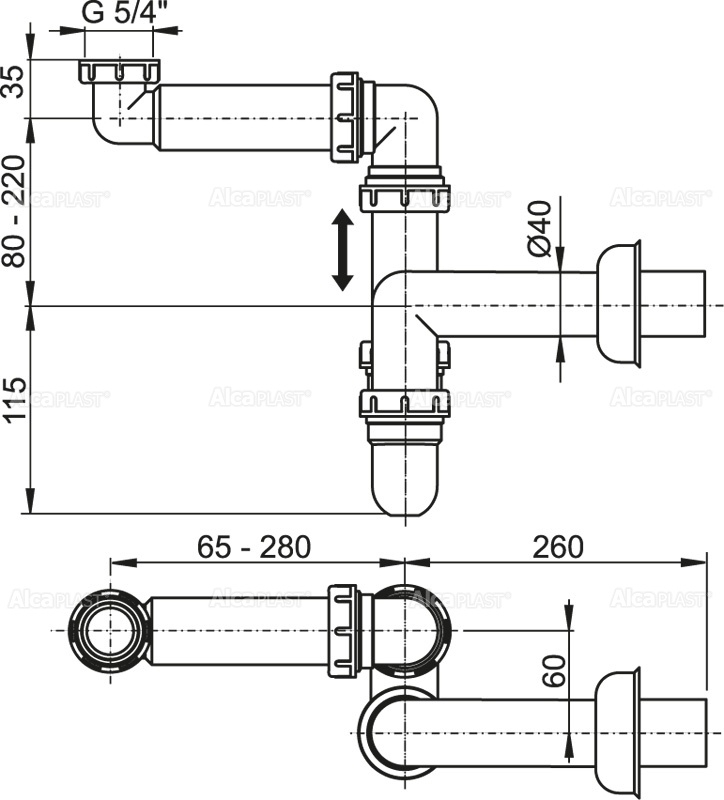 Cифон для раковины Alcadrain экономящий пространство с накидной гайкой 5/4″ A434