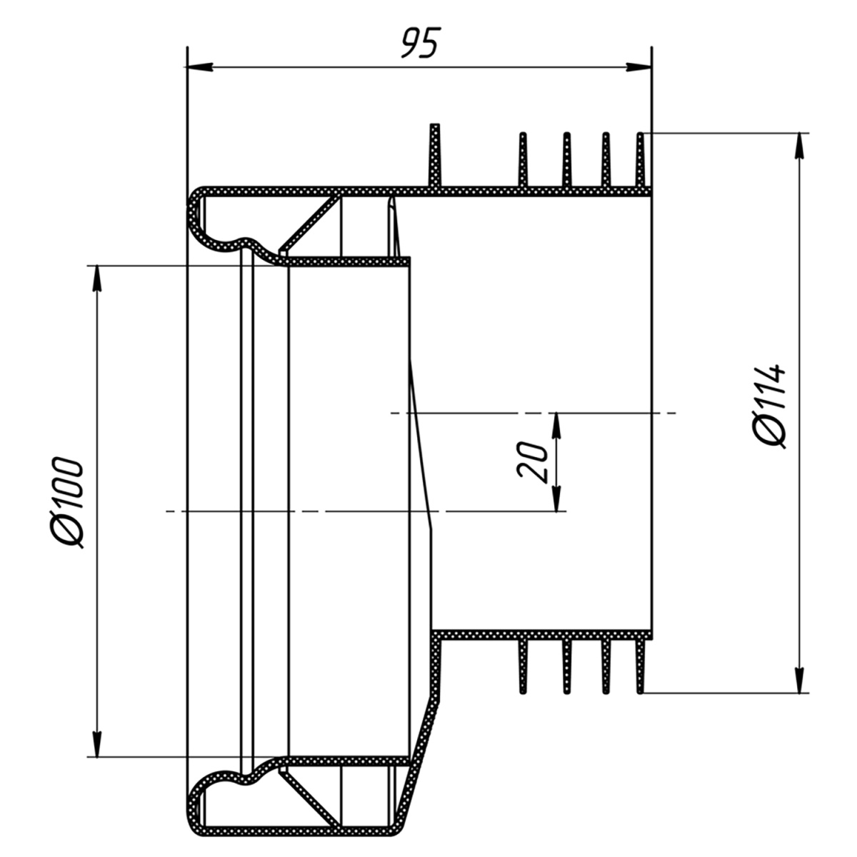 Эксцентрик жесткий для подключения унитаза к канализации диаметр 110мм. Для чугунных труб