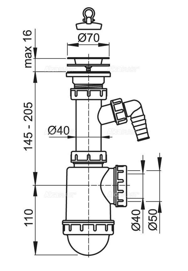 СИФОН ДЛЯ МОЙКИ С НЕРЖАВЕЮЩЕЙ РЕШЕТКОЙ Ø70 И ШТУЦЕРОМ