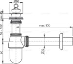 Сифон для раковины Alcadrain 32 мм, цельнометаллический, с водосливом 5/4″, хром A437