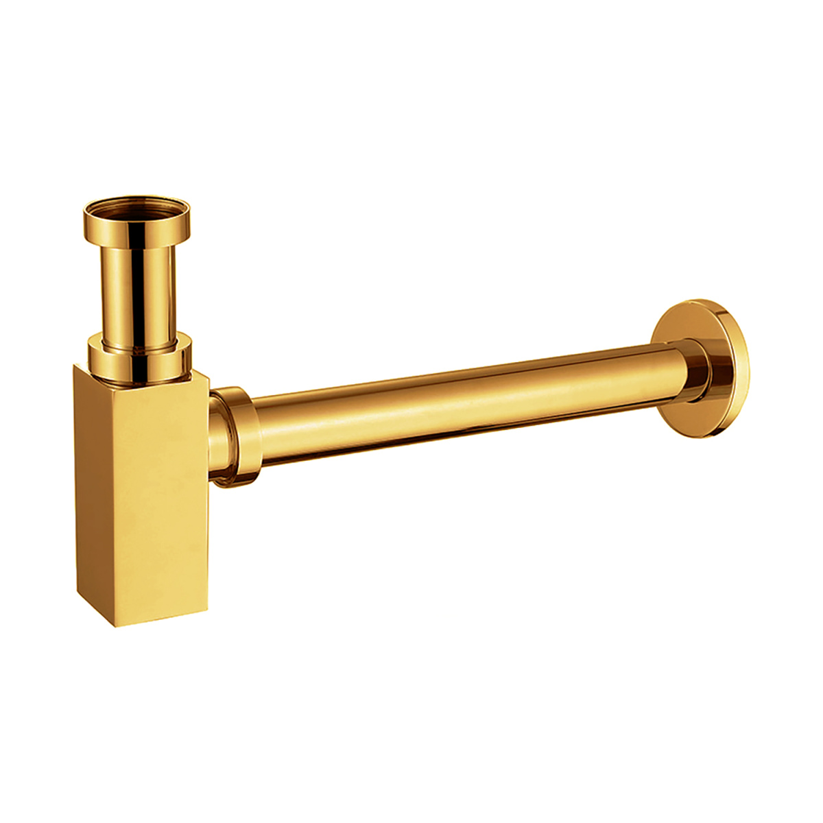 Сифон для раковины AZARIO G 1 1/4, без выпуска, квадрат, латунь, золото AZ-109-GL