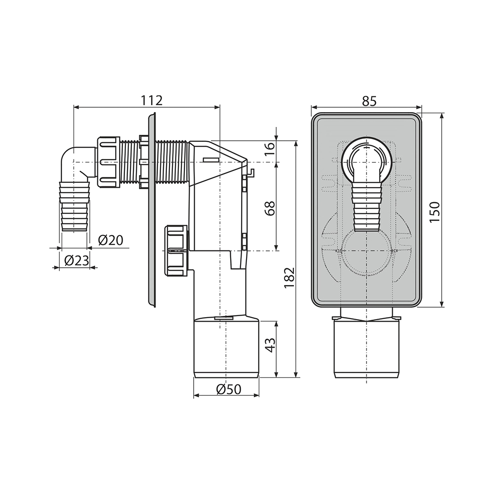 Сифон для стиральной машины Alcadrain под штукатурку AG210321100