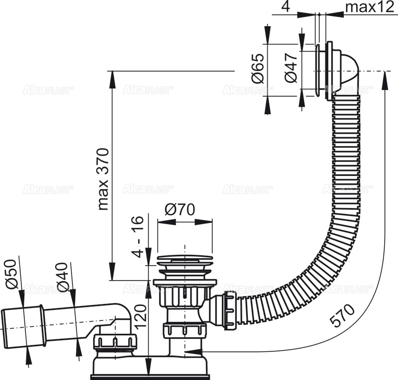 Слив-перелив Alcadrain для ванны, click/clack, хром A505CRM