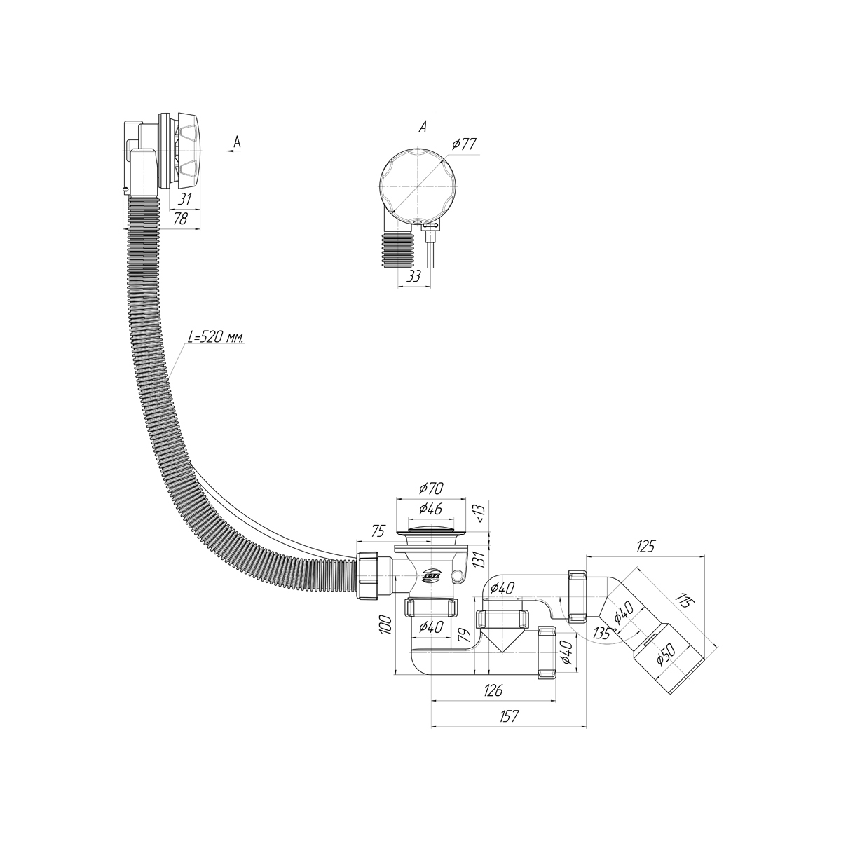 Обвязка полуавтомат для ванны АНИ Пласт EM321 применяется для организации слива воды в систему канализации в ванне, а также ее заполнения. Представляет собой полуавтоматическую конструкцию, которая закрывает сливное отверстие в ванне, а также отверстие для перелива. Закрытие и открытие сливного отверстия происходит с помощью вращающейся крышки из нержавеющей стали диаметром 77 мм на отверстии перелива. Максимальная длина гофрированной трубы перелива 520 мм. Пробка обвязки для ванны из нержавеющей стали диаметром 43 мм.