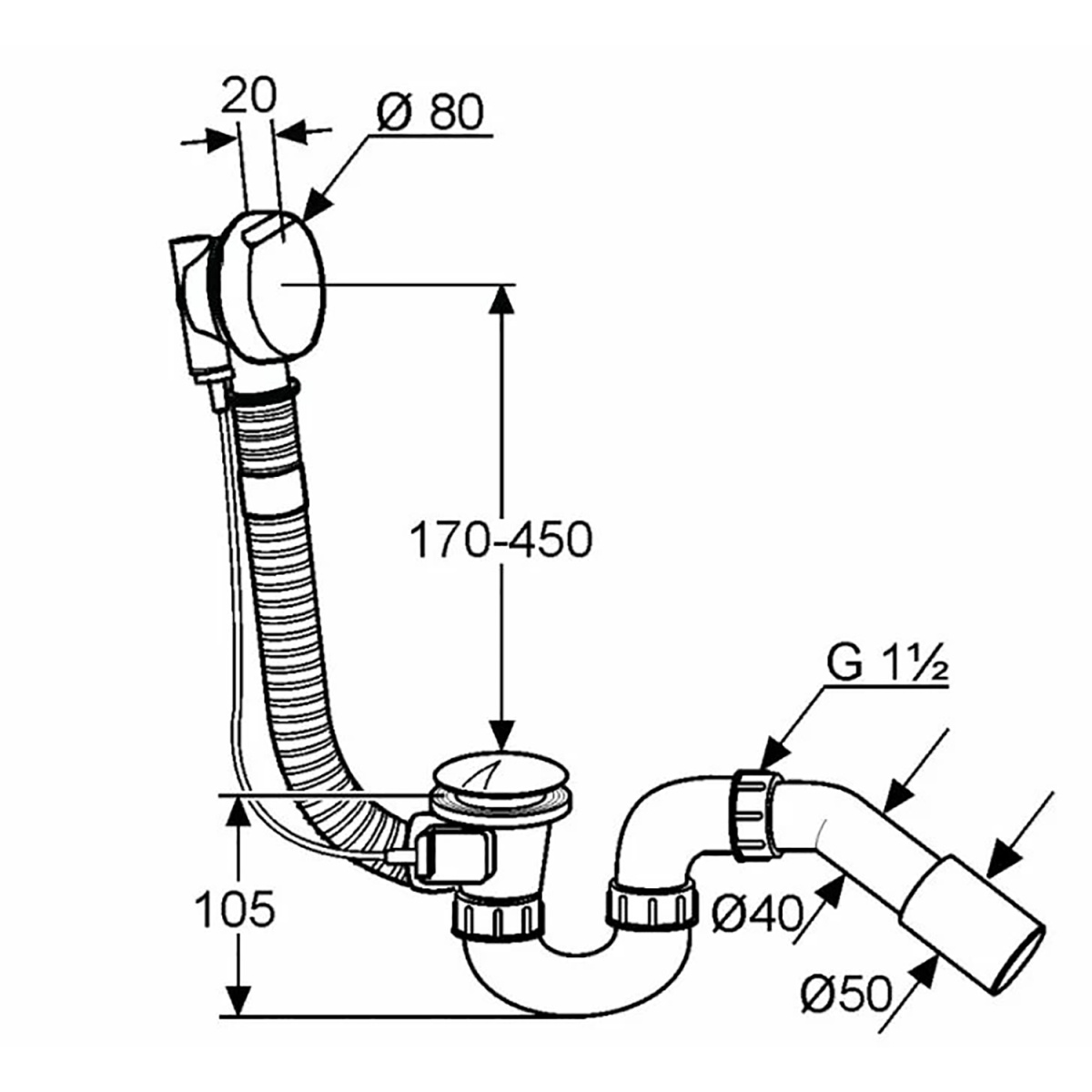 Слив-перелив для ванны KLUDI ROTEXA 2000 п/автомат G 1 1/2 2130005N-00