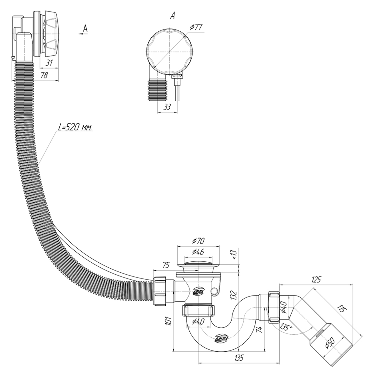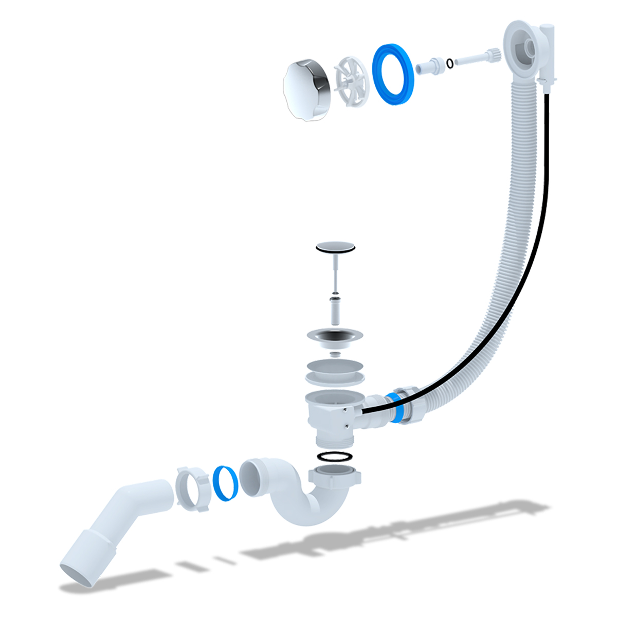 • Для ванн с отверстием слива Ø50 мм и отверстием перелива от Ø48 до 56 мм (стандартное отверстие 50 мм)