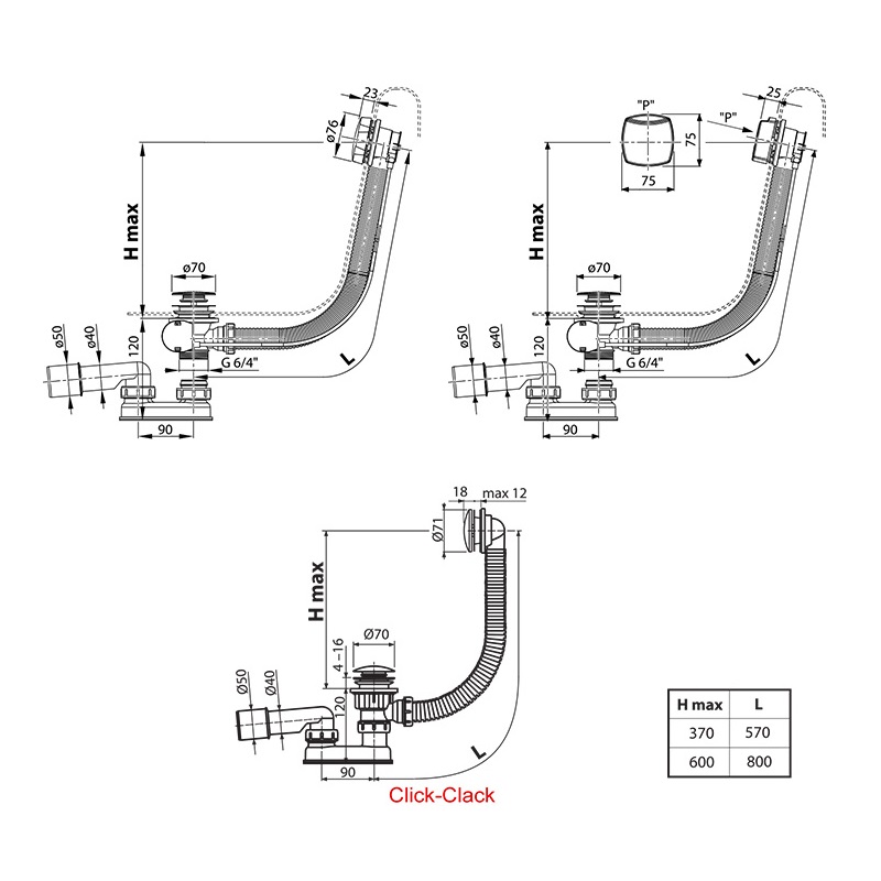 Слив-перелив Ravak для ванны, 800 мм, квадратный, хром X01506