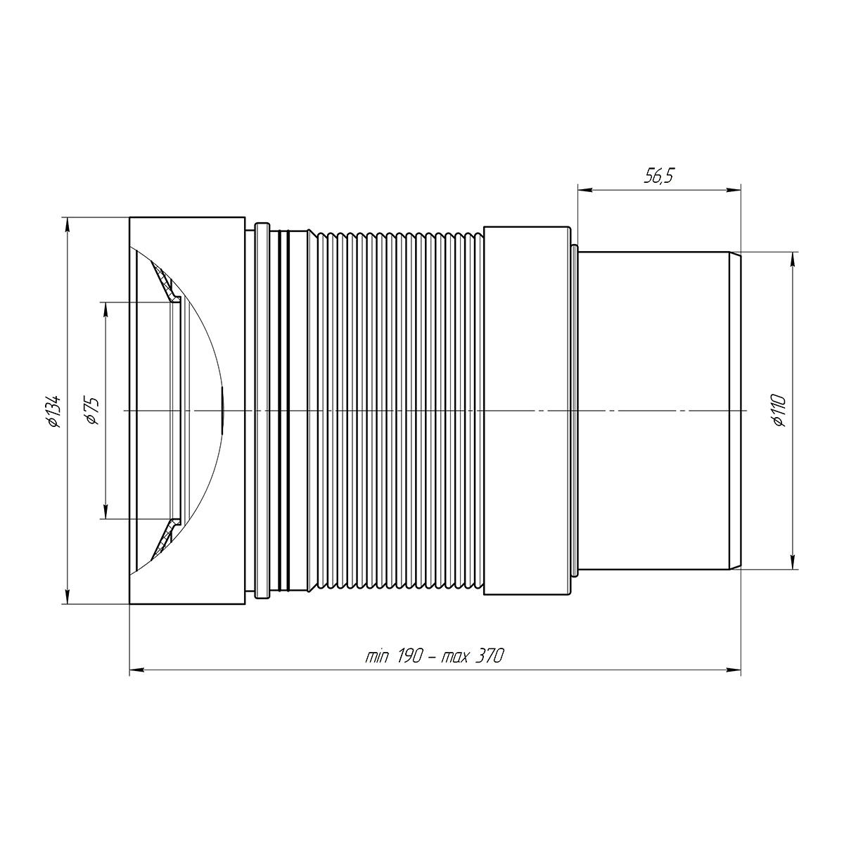 K821 — удлинитель гибкий для унитаза выход в канализацию 110мм длина 200-360мм, для пластиковых труб. Выход в канализацию в виде адаптера для присоединения к пластиковой канализации диаметром 110 мм.
