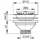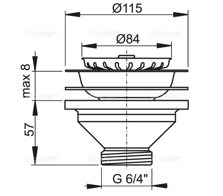 СЛИВНОЙ КЛАПАН СИФОНА ДЛЯ МОЙКИ 6/4″ С НЕРЖАВЕЮЩЕЙ PEШEТКОЙ Ø115