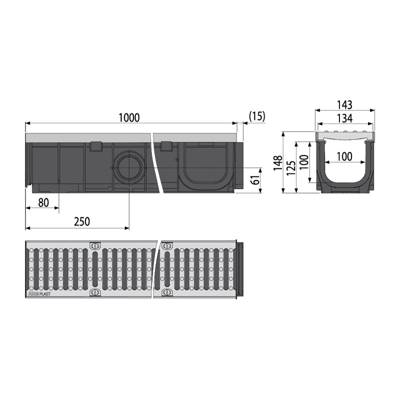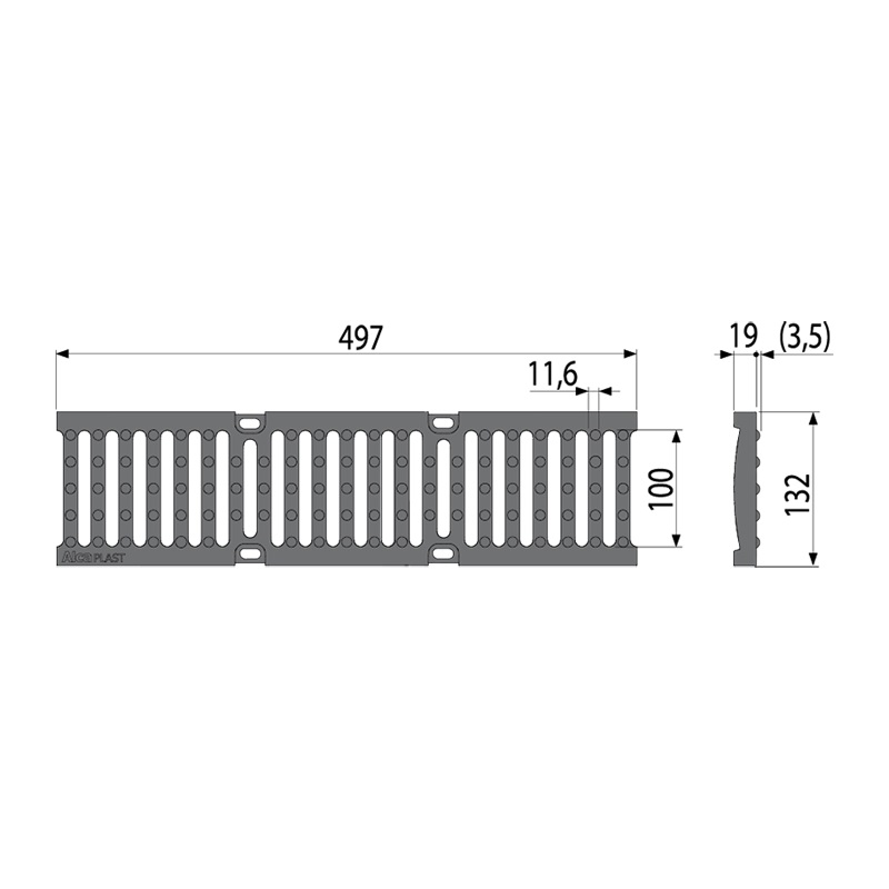 Дренажный канал Alcadrain 100, с металлической рамой и чугунной решеткой D400 AVZ103-R201
