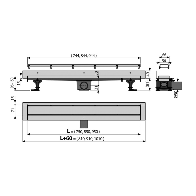 Душевой лоток Alcaplast Fit and Go Wall APZ23-DOUBLE9-850 с двусторонней решеткой.