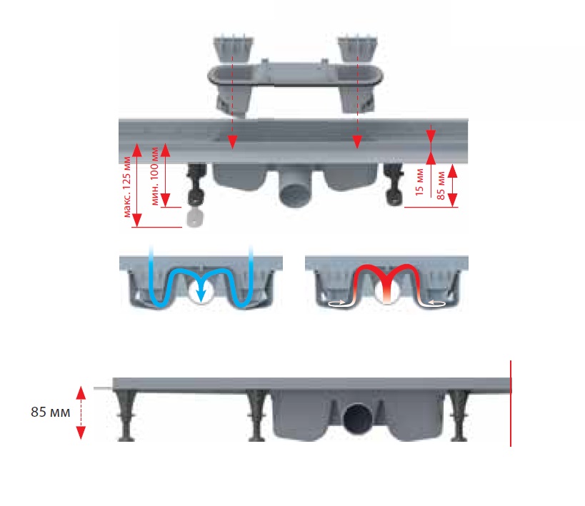 ¡ Комбинированный гидрозатвор обеспечивает надежную защиту от проникновения запаха из канализации и после высыхания воды в сифоне