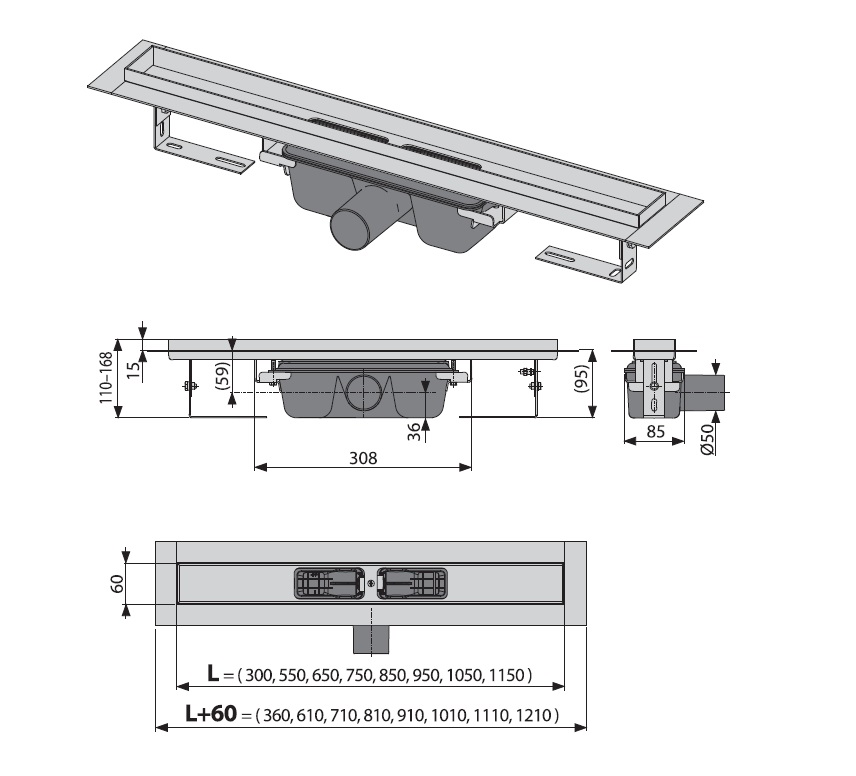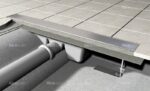 Водоотводящий желоб предназначен для установки цельной решетки. Нержавеющий порог желоба образует визуальный переход между краем желоба и вставленной решеткой. Вода втекает в желоб только между краями желоба и решетки. Желоб может быть установлен на открытом участке или к стене душевой поверхности.