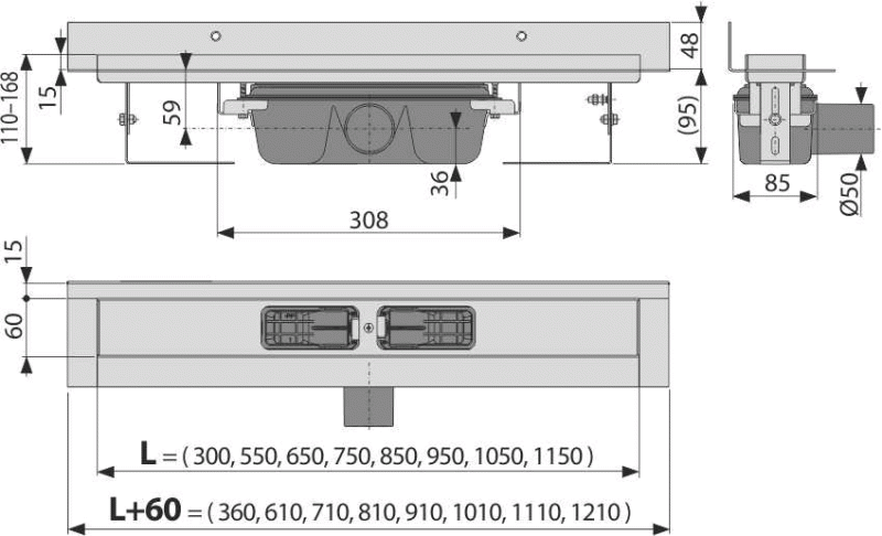Высота монтажа от 95 мм.