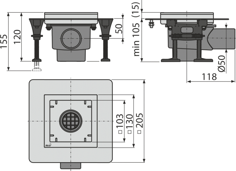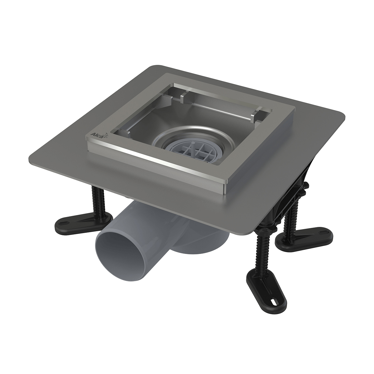 СЛИВНОЙ ТРАП ИЗ НЕРЖАВЕЮЩЕЙ СТАЛИ 130×130 ММ БОКОВОЙ СТОК, БЕЗ PЕШЕТКИ, ГИДРОЗАТВОР МОКРЫЙ