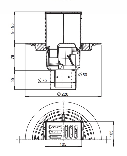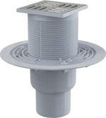 Сливной трап 105 × 105/50/75, подводка – прямая, решетка – нержавеющая сталь, гидрозатвор – комбинированный гидрозатвор SMART