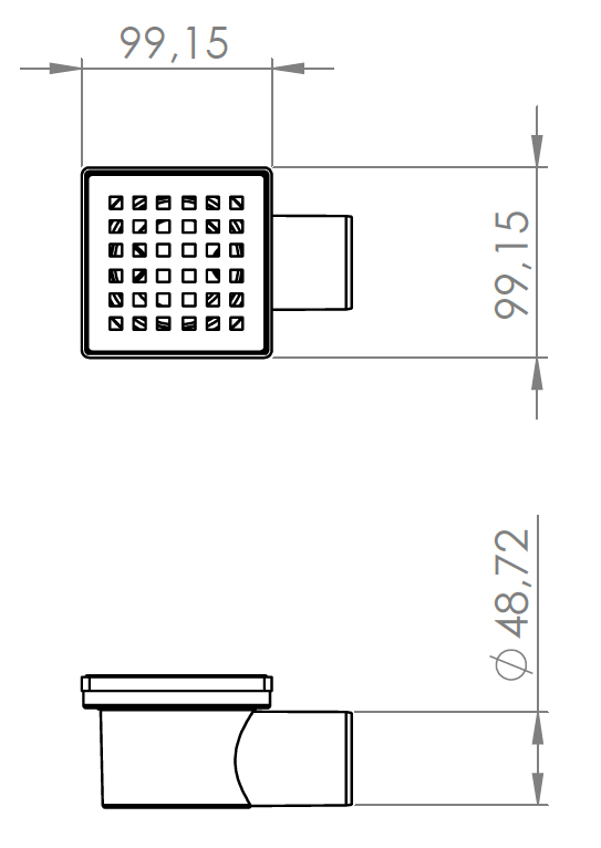 Душевой трап LORANTO LINE 100×100 боковой сток, решетка из нержавеющей стали, гидрозатвор сухой 301 3012.0Y050K.010.1