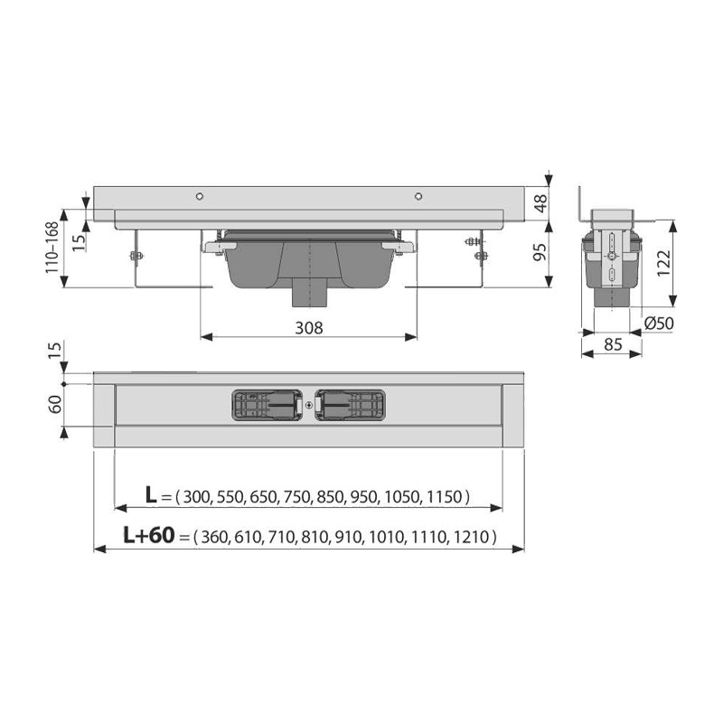 Водоотводящий желоб Alcadrain 850, с порогами для цельной решетки и фиксированным воротником к стене APZ1016-850