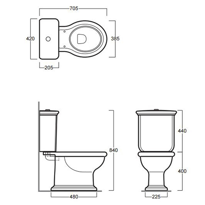 Размеры чаши унитаза (ШхВхД): 385x400x500 мм.