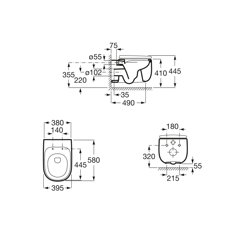Подвесной унитаз Roca BEYOND Rimless, безободковый 7.3460.B.700.0