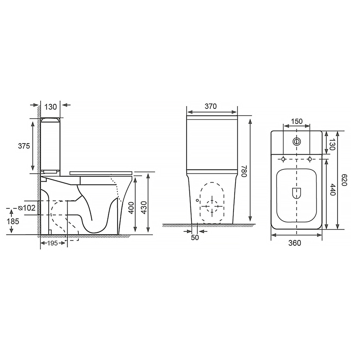 Унитаз-компакт Azario Candy 370х620х780 напольный, безободковый, в комплекте с бачком и сиденьем мик AZ-1503B