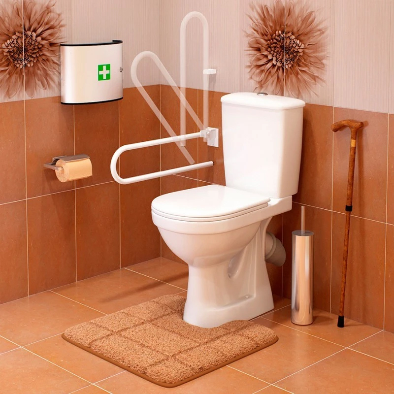 В комплекте: арматура однорежимная “АНИ ПЛАСТ”, сиденье полипропилен “УКЛАД”, откидной окрашенный поручень (крепление к стене)