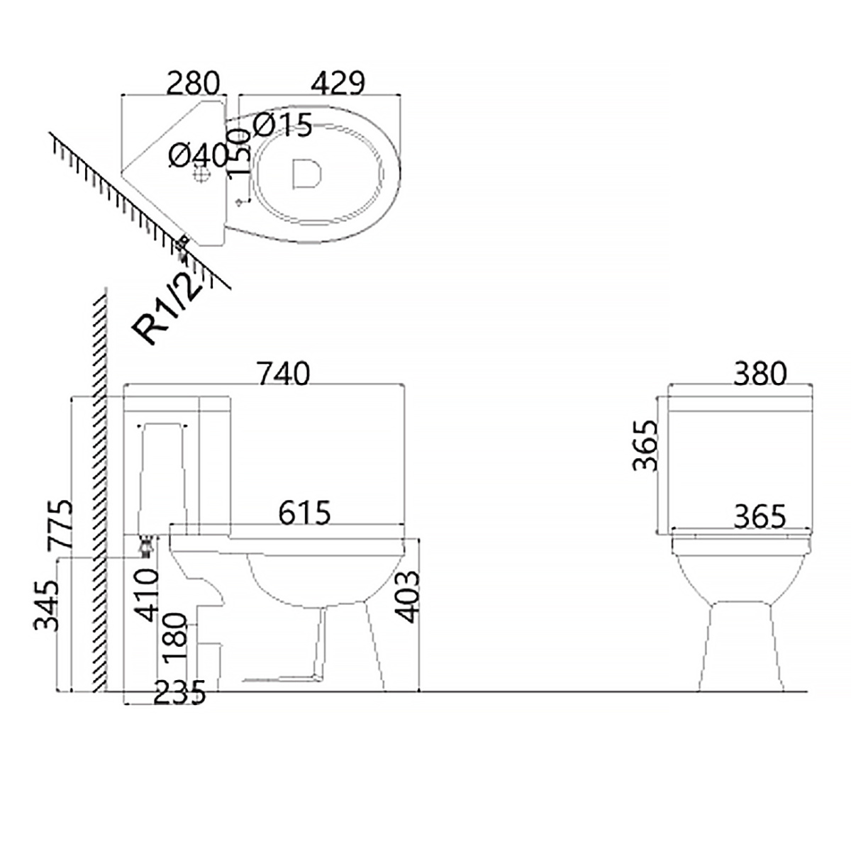 Унитаз – компакт угловой Creo Ceramique PROJECT 380х740х755, микролифт, белый PR1002S+PR1003D+PR1001S