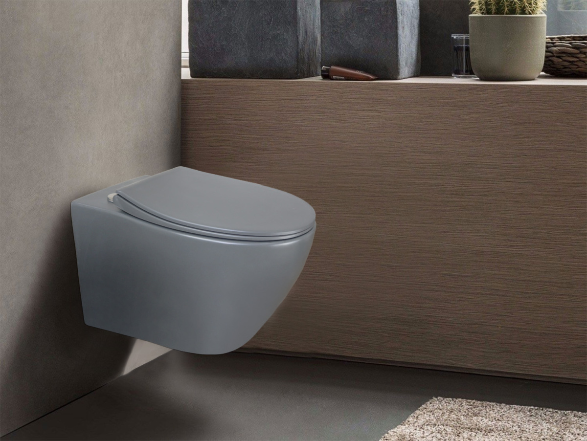 Унитаз подвесной Azario Keras 370х520х360 безободковый, с быстросъемным сиденьем микролифт, серый ма AZ-99046G