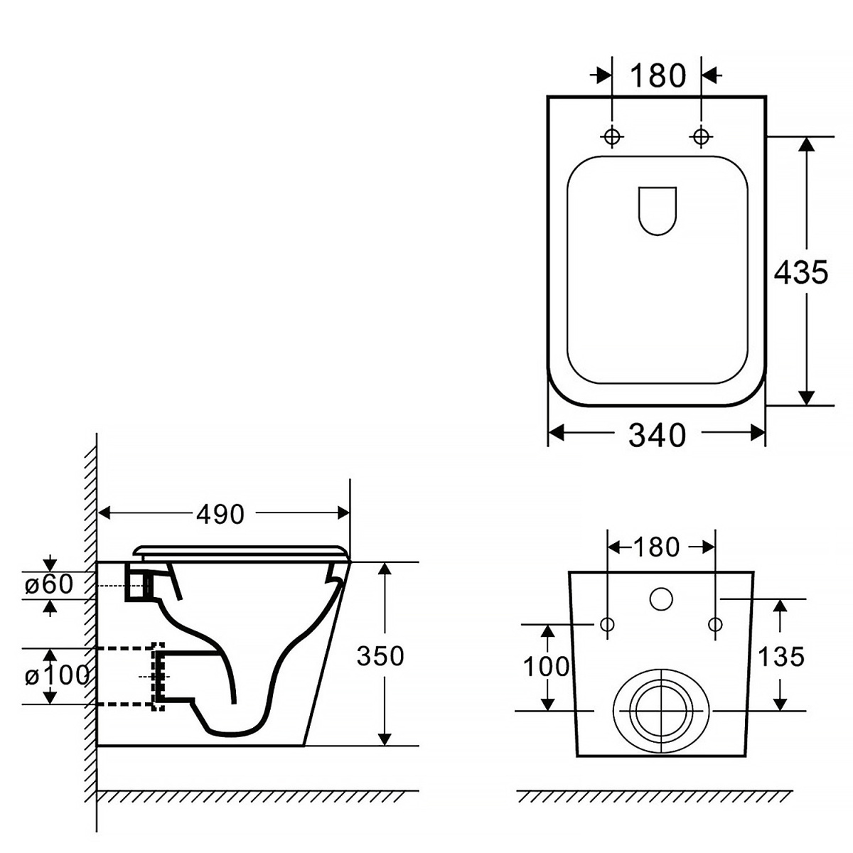 Унитаз подвесной Azario Teramo 490х345х355 безободковый, слив скрытое торнадо, быстросъемное сиденье AZ-0052-UQ3MB