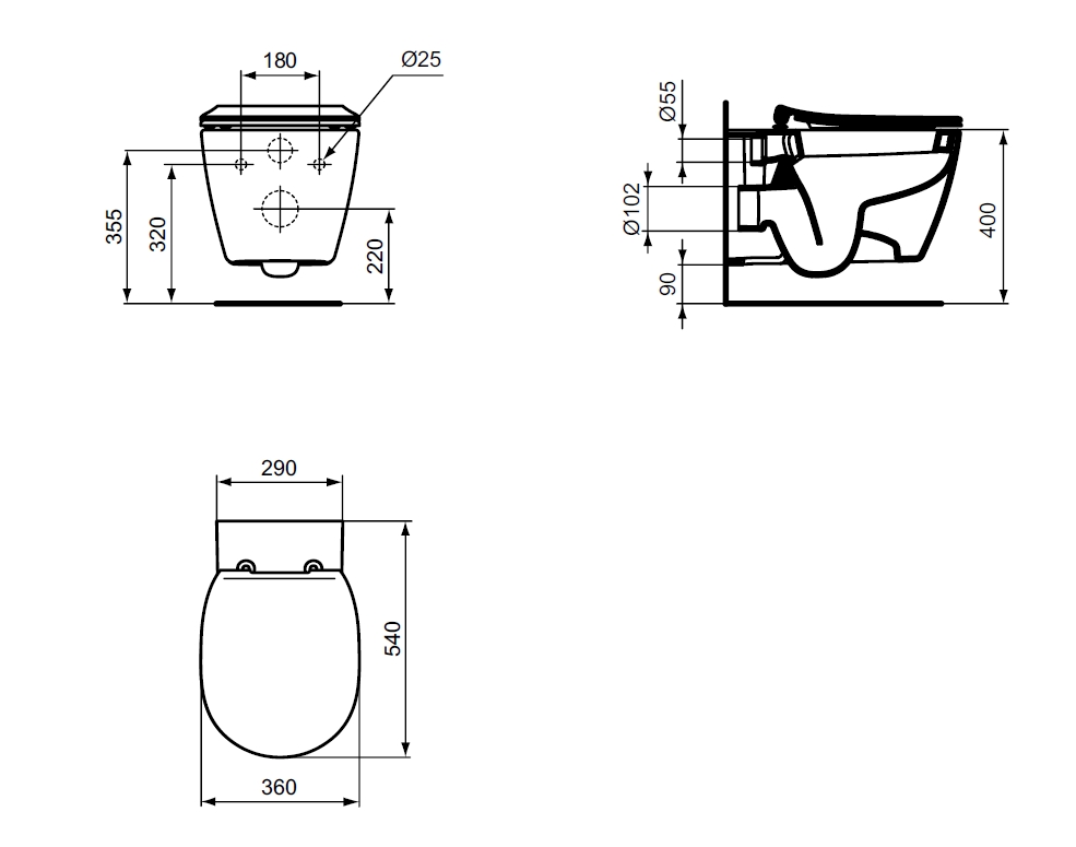 CONNECT AquaBlade® Подвесной унитаз с полностью скрытым креплением, с крепежом TT0299327, для монтажа с сидением и крышкой E712801/E712701 (обычное) или E772301/E772401 (тонкое)