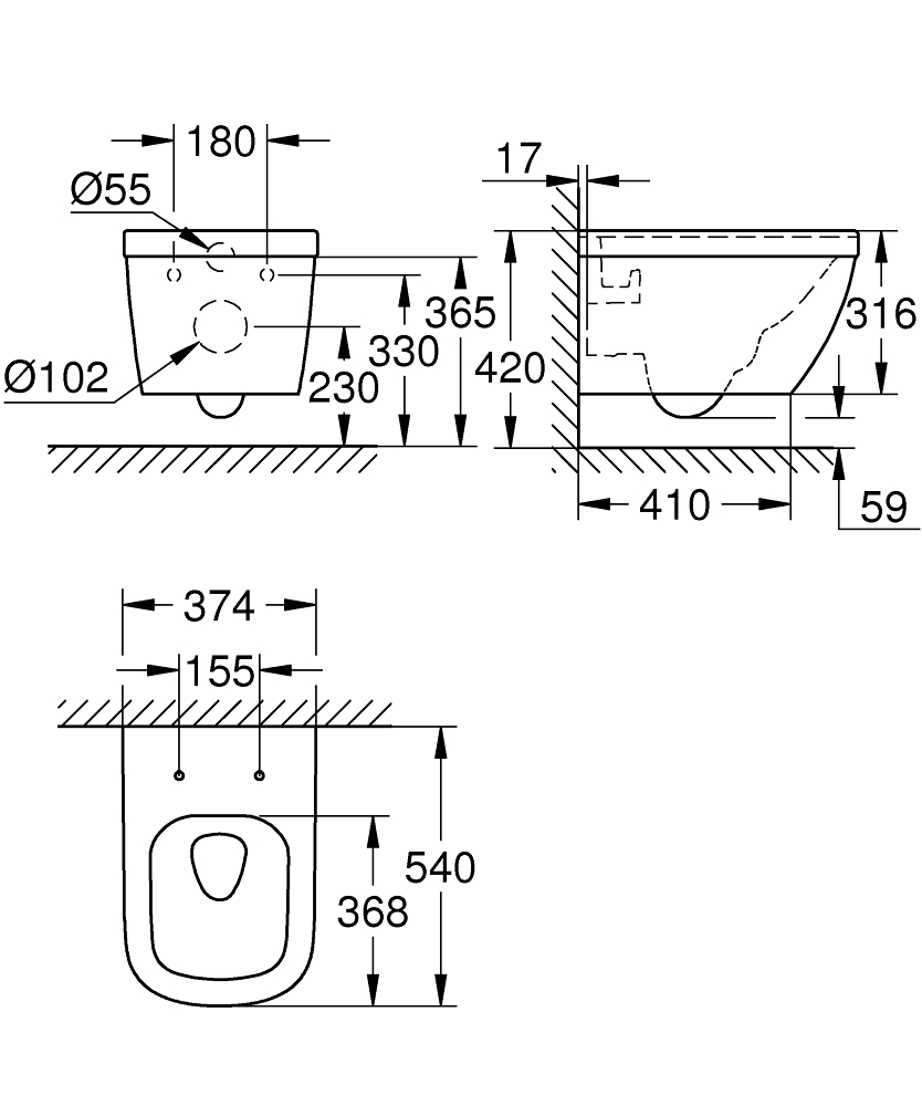 Унитаз подвесной Grohe Euro Ceramic безободковый, без сиденья () 39328000