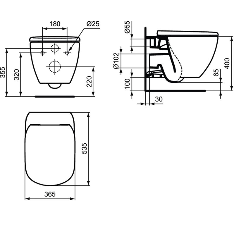 Снято с производства TESI Rimless Безободковый подвесной унитаз, глубокий смыв, с сидением и крышкой с функцией плавного закрытия T352701, с крепежом для полностью скрытого монтажа (TT0299598)