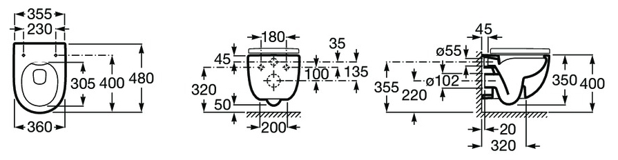 Унитаз подвесной Roca Meridian-N безободковый, скрытый монтаж, белый 7.3462.4.400.0
